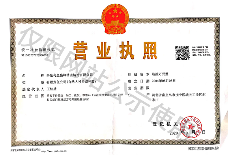 秦皇島金盛緣精密鑄造有限公司是ISO9001:2000認證企業(yè)。專業(yè)生產各型碳鋼,低合金鋼,不銹鋼以及銅,鋁等有色金屬精密鑄件。公司位于秦皇島市撫寧縣城關工業(yè)開發(fā)區(qū),西接京,津,唐東臨著名旅游避暑勝地北戴河,交通便利。